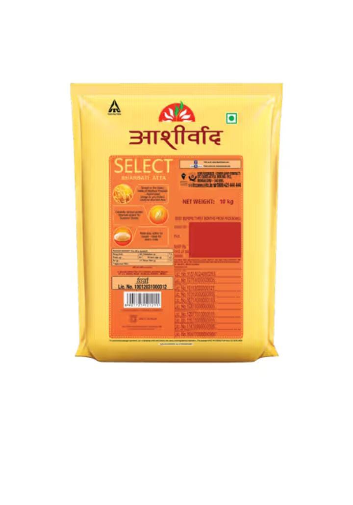 The description for Aashirvaad Superior MP Atta highlights several key features and benefits: ​Source and Quality: It is made from 100% whole wheat and is often sourced directly from farmers, particularly from the fertile fields of Madhya Pradesh (MP), which is known for its high-quality wheat grains like Sharbati wheat. The grains are described as dense, with a radiant golden/amber hue. ​Processing: It is processed using a 4-step advantage process which includes a 3-step cleaning process to remove impurities. The grains are ground using the traditional 'chakki' method to ensure the retention of the wheat's high nutritional value, natural goodness, and aroma. ​Nutritional Value: The product is known to be: ​High in dietary fiber. ​A rich source of protein. ​100% Atta with 0% Maida. ​Free from additives and preservatives. ​The natural fibers and nutrients aid in easy digestion and supporting immunity. ​Resulting Food: The flour's key benefit is that it makes soft, fluffy, and delicious rotis (chapatis) that remain softer for a longer period because the dough absorbs more water. It can also be used for other Indian breads like parathas, puris, and even healthier versions of baked goods. ​Packaging: It utilizes mechanised packaging with zero human contact to ensure safety and prevent tampering.