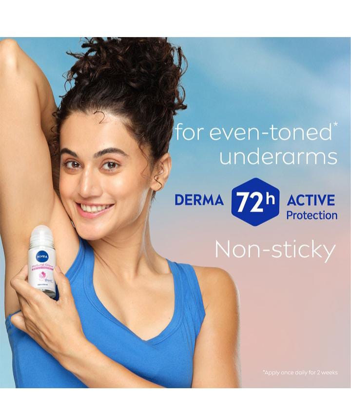 The NIVEA WOMEN Natural Glow Deodorant Roll-On is a specialized product designed to offer dual benefits: reliable odour protection and underarm skin care, specifically targeting uneven skin tone and promoting smoothness. The product is typically marketed under variants like "Natural Glow Smooth Skin" or "Natural Glow Sensitive." 🌸 NIVEA WOMEN Natural Glow Roll-On This deodorant focuses on helping women achieve even-toned and smooth underarms so they can feel confident wearing sleeveless outfits. 💖 Key Features & Benefits Even-Toned Underarms (Natural Glow): This is the primary feature. The formula is enriched with natural extracts—most commonly Mulethi Extracts (Licorice Root) and sometimes Vitamin C or Hydrolyzed Pearl—which are known for their skin-brightening and soothing properties. Regular use is intended to reduce discoloration and give the underarms a "natural glow." **48-Hour Odour Control and Anti-Perspirant: It contains Aluminum Chlorohydrate to provide effective and long-lasting protection (up to 48 hours) against both body odour (by fighting odour-causing bacteria) and underarm wetness/sweat. Smooth Skin Care: Ingredients like Avocado Oil or other caring oils are included in the gentle formula to nourish the delicate underarm skin, helping to keep it smooth. Gentle and Non-Irritating: It has a 0% Alcohol (Ethyl Alcohol) formula, making it gentle on the skin, reducing irritation, and making it suitable for use even after shaving or hair removal. It is dermatologically tested for skin tolerance. Application: Comes in a convenient roll-on format for quick, easy, and precise application, ensuring the liquid dries down without excessive residue. In summary, the NIVEA Natural Glow Roll-On is an anti-perspirant and deodorant that integrates skin-lightening